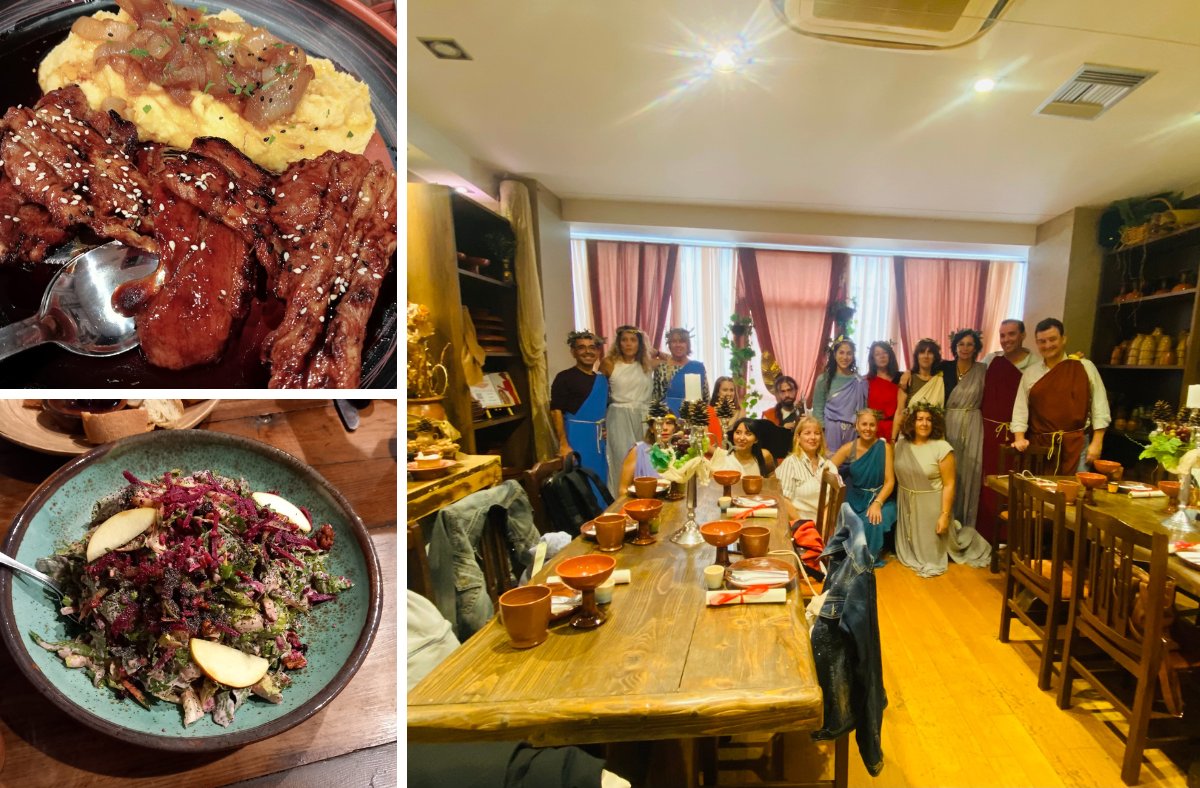 Davant aquest impressionant conjunt de temples descobrirem que Atenes porta aquest nom en homenatge a la deessa Atenea, nascuda del cap de Zeus. Aquesta deessa va regalar als ciutadans d'Atenes una olivera que va portar glòria i felicitat a la ciutat que des de llavors porta el seu nom. Després de visitar l'Acròpolis vam poder degustar un antic esmorzar grec, amb música i balls típics de l'època, vestits com els antics habitants de la ciutat.