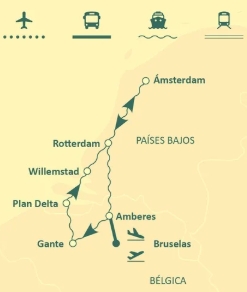 - Excursions en bus privat a Brujas, Gante, Plan Delta, paseig per Veere, Kinderdijk, Delf, Amsterdam en vaixell, Rotterdam i Amberes.